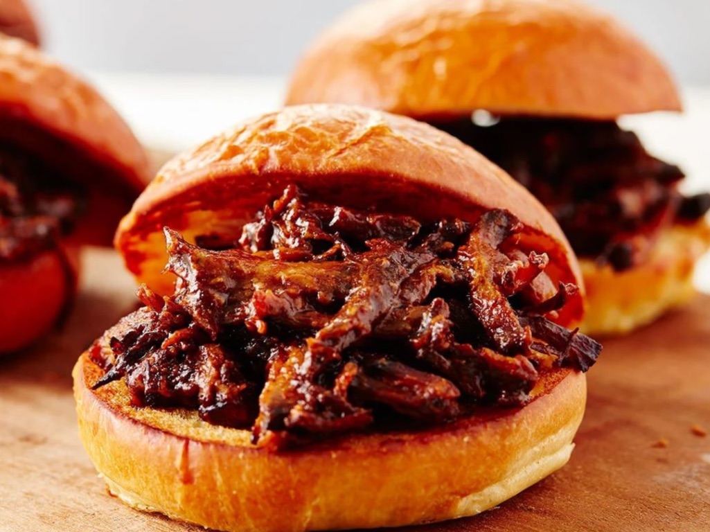 Tender, Slow Cooked Brisket, Tossed In BBQ Sauce, On 2 Soft Brioche Slider Buns.