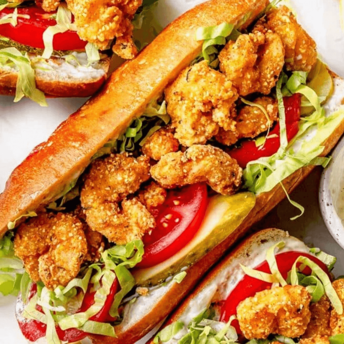 Golden, Crunchy Shrimp Tucked Into A Soft Sub With Fresh Lettuce, Tomatoes And Signature Sauce.