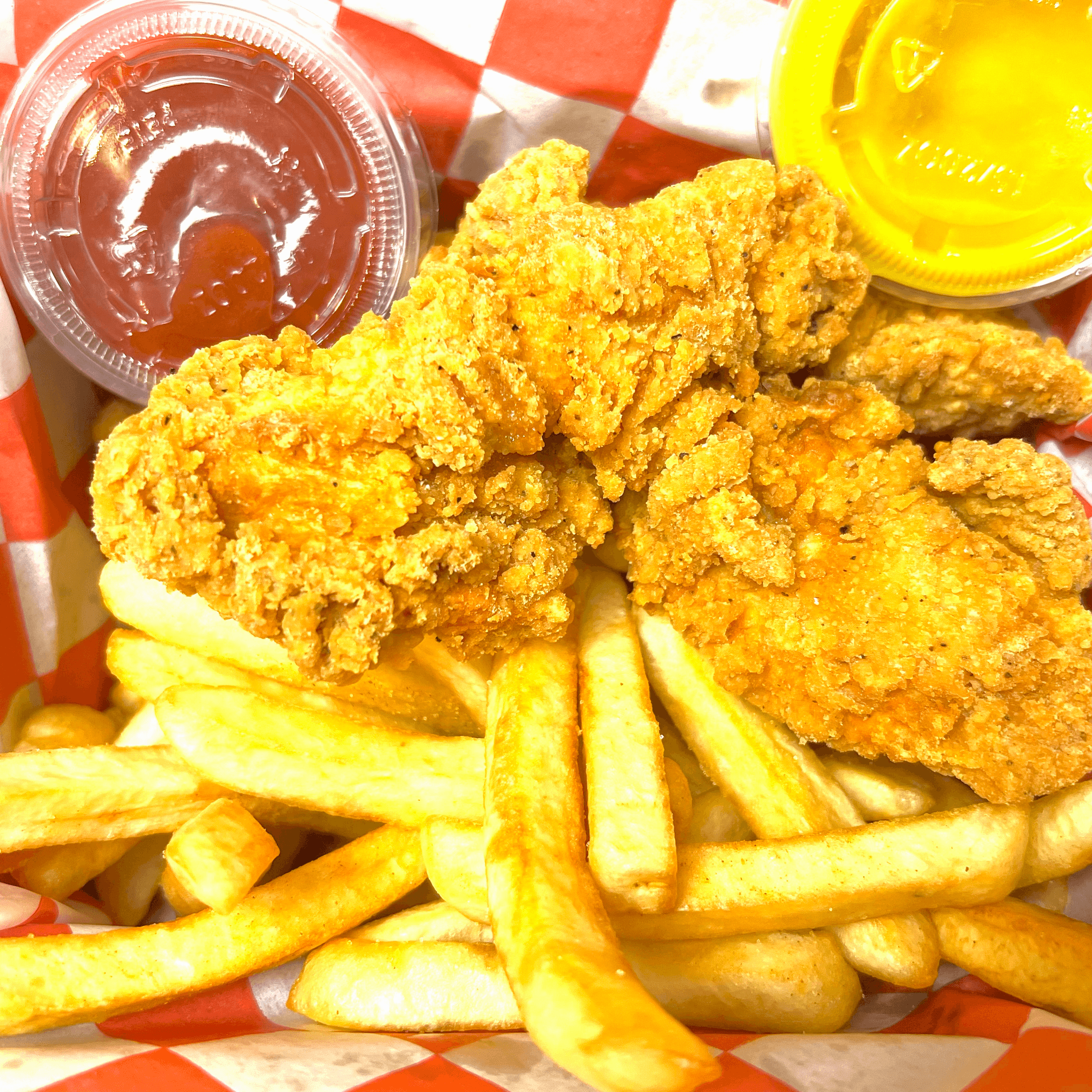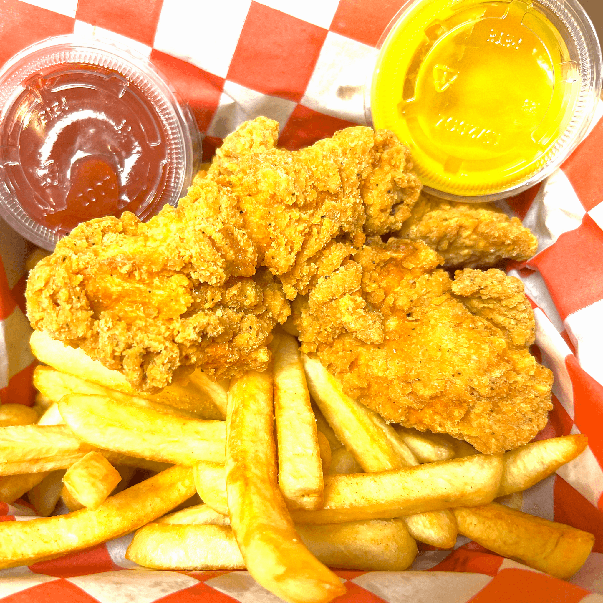 3 Crispy Tenders Paired With Golden Fries And Your Choice Of Canned Soda Or Bottled Water.