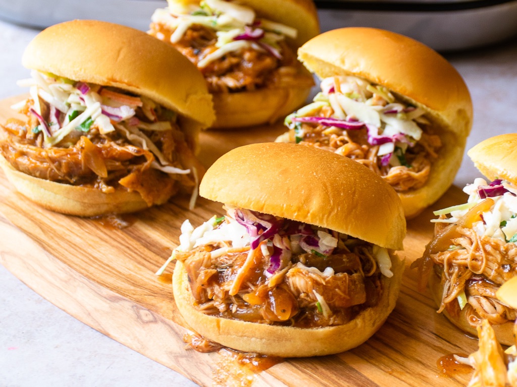 Juicy Seasoned Pulled Chicken, Served On Soft Brioche Slider Buns.