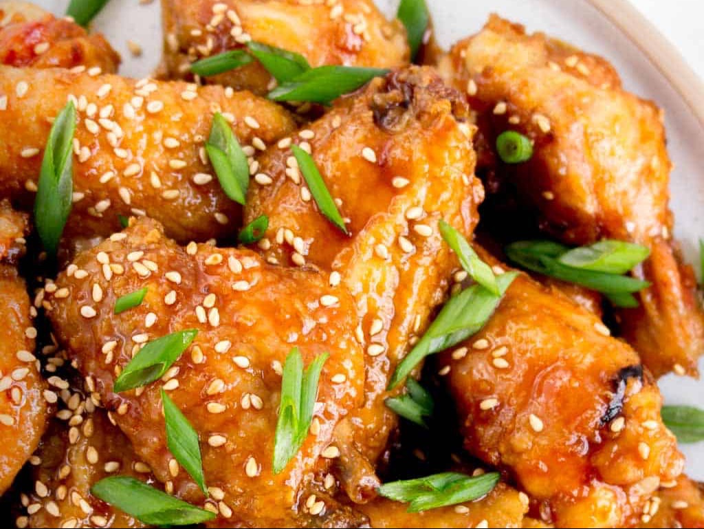 Golden Wings Coated With A Tangy Orange Sauce And A Kick Of Heat.