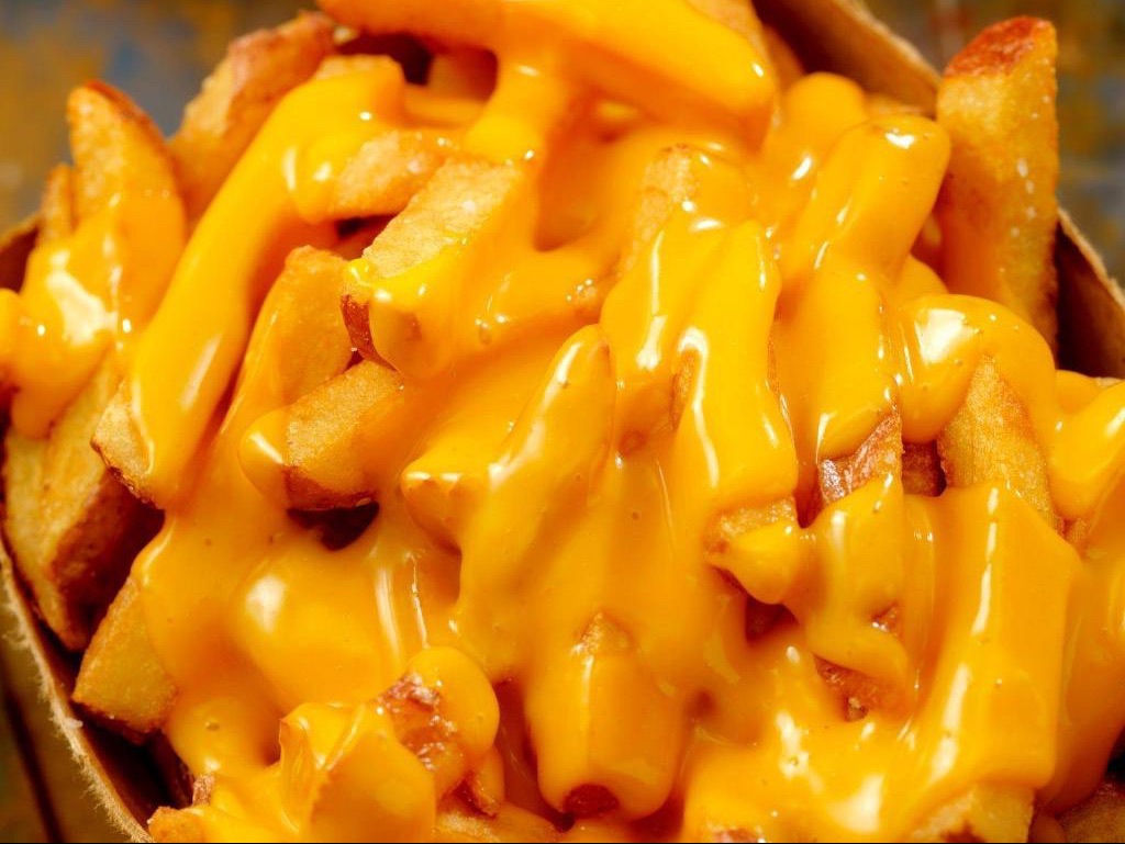 Crunchy, Golden Waffle-Cut Fries With A Soft, Tender Center Topped With Warm Melted Cheese.