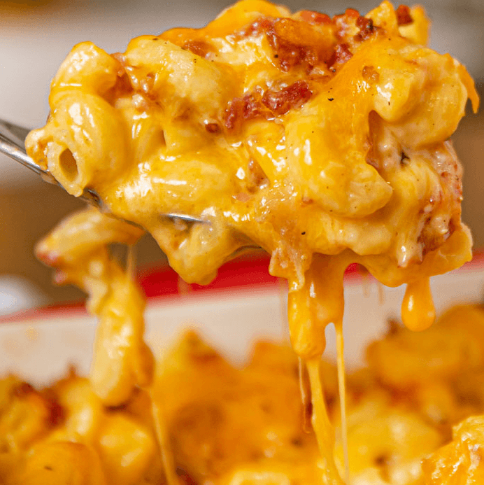 Creamy Macaroni Blended With Melted Cheeses And Topped With Crispy Bacon.