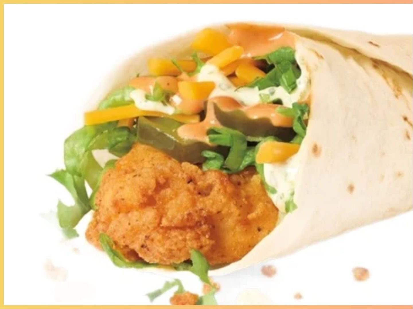 Juicy Crispy Chicken, Lettuce, Tomatos, Shredded Cheddar, And Flavorful Sauce, All In A Wrap.