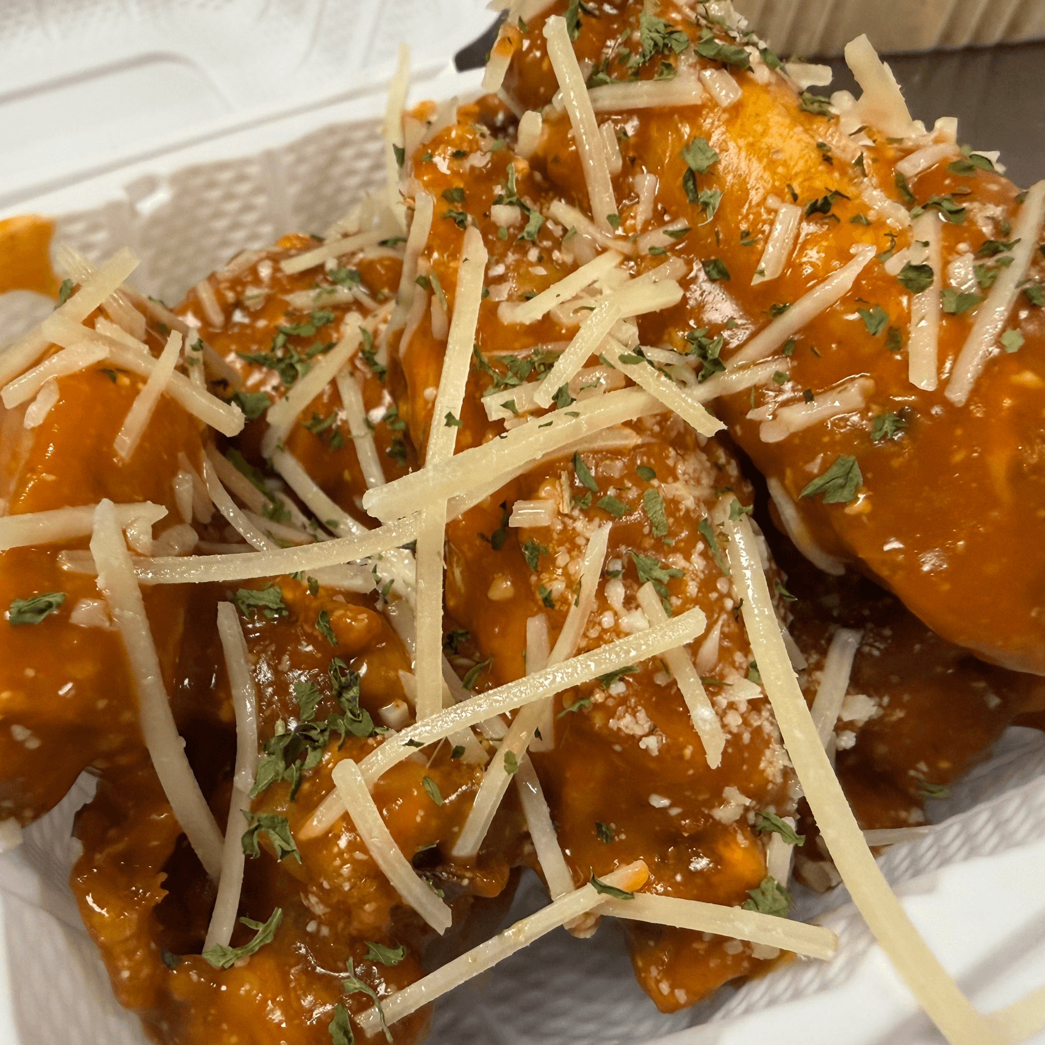 Golden Wings Smother In A Buffalo Garlic Parmesan Sauce.