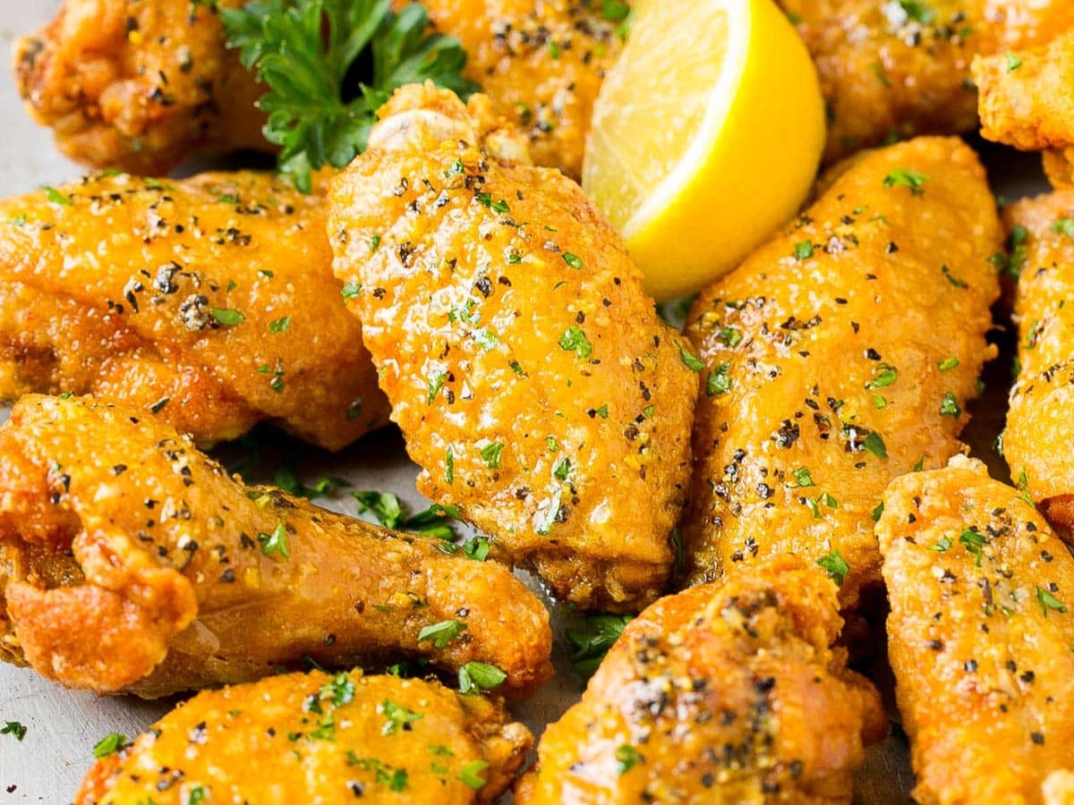 Crispy Coated Tangy Lemon Pepper Wings.